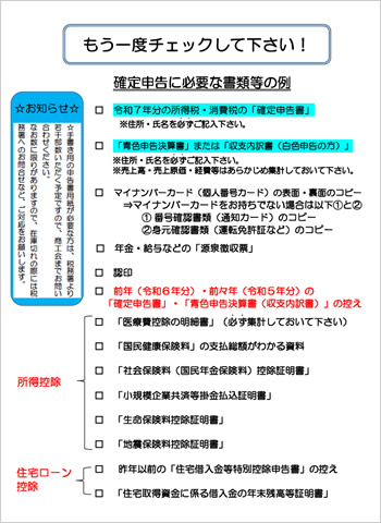 ・確定申告に必要な書類のチェック表はこちらへ(PDFファイル)